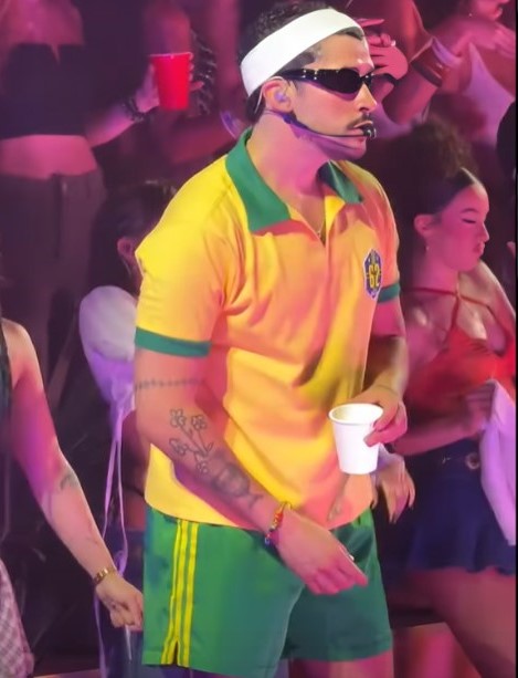 Durante su show en el Allianz Parque de São Paulo, Bad Bunny apareció en el escenario luciendo una camiseta retro inspirada en la histórica selección de Brasil campeona del mundo en 1962.