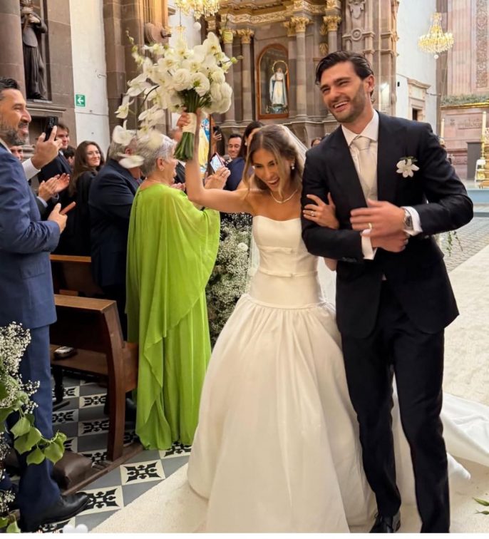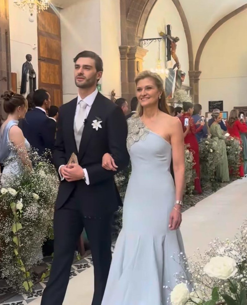 Para la ceremonia religiosa, la novia entró del brazo de su padre, mientras que el novio lo hizo acompañado de su madre. Antonio, es hijo de Toño Mauri y Carla Alemán Magnani,