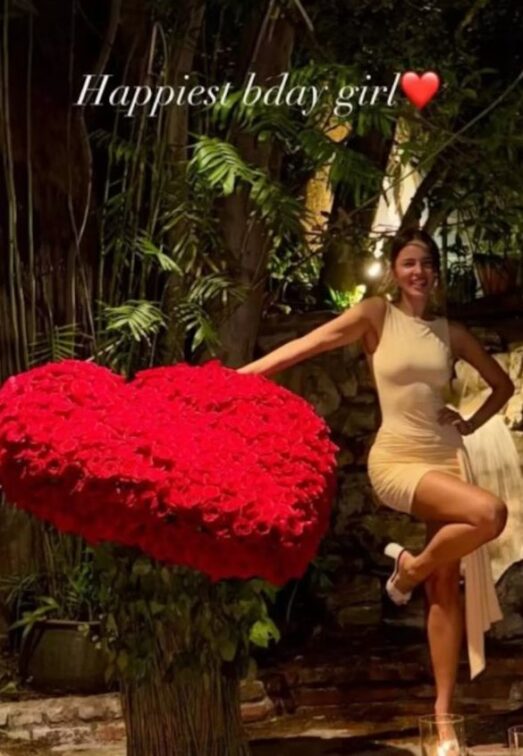 El detalle que encendió Instagram fue un enorme ramo de rosas rojas en forma de corazón, acompañado de una dedicatoria pública que no pasó desapercibida. Dimitrov compartió una imagen del festejo y escribió sin reservas: “La reina del cumpleaños”, dejando claro el nivel de admiración y entrega que siente por la actriz, quien atraviesa una etapa plena tanto en lo personal como en lo profesional.