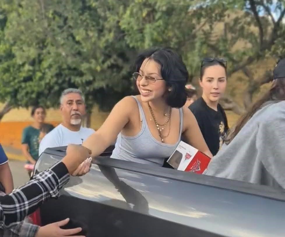 En videos virales se observa a Ángela y Nodal entregando regalos y tomándose fotos con los pequeños, mientras Pepe Aguilar organizaba la caravana.