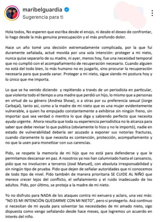 Maribel explicó que hace un año tomó una decisión muy difícil con una sola intención: proteger a su nieto, subrayando que “nunca quise separarlo de su madre”, sino brindarle apoyo en un momento vulnerable.