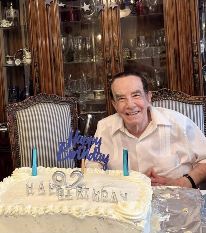 El querido Mauricio Herrera festejó sus 92 años, rodeado del gran amor de su vida, su esposa Luhana, sus hijos y grandes amigos. Entre ellos, Carlos Espejel, la actriz Lorena Álvarez y la productora Carla Estrada. ¡Felicidades, qué maravilla llegar tan lúcido y saludable a esa edad!