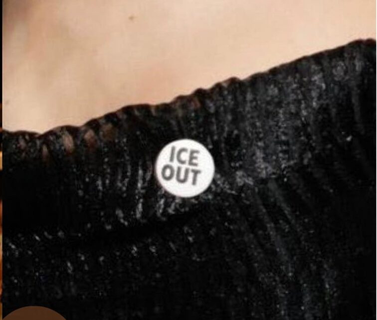 La cantante Ariana Grande en los Golden Globes llevaba puesto un Pin que decía “OUT ICE” (Fuera ICE) en señal de protesta contra la administración de Donald Trump.